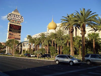 Jag hann inte mer än landa i San Diego innan det var dags att hoppa i bilen och köra iväg till Vegas för några dagars dekadent leverne. Jag åkte med de tre vännerna Emil, Petter och Johanna och bodde på Tropicana, ett fint och framför allt centralt beläget hotell med utsikt rakt in i MGM Grands gröna fasad. En riktigt fantasistad där man kan hitta många av världens kändaste byggnader i skalor som inte är mycket mindre än orginalen. Bl.a Effeltornet, frihetsgudinnan, Empire State building och en häftig svart pyramid.